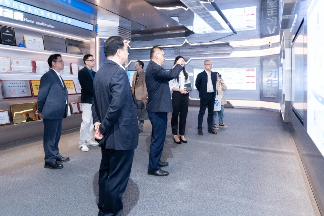 1月16日,深圳市人力资源和社会保障局职业能力建设处处长、一级调研员杨保华,职业能力建设处四级调研员黄宇,职业能力建设处一级主任科员石紫嫣等领导一行莅临讯方技术总部调研指导。讯方技术总裁刘国锋、人才出海事业部合伙人黄穗然、执行副总裁刘铭皓、深圳区域总经理张松柏等予以热情接待,并陪同参观公司展厅。双方围绕数智人才培养进行深入交流,就人才培养机制优化、政策资源协同等议题展开务实讨论。