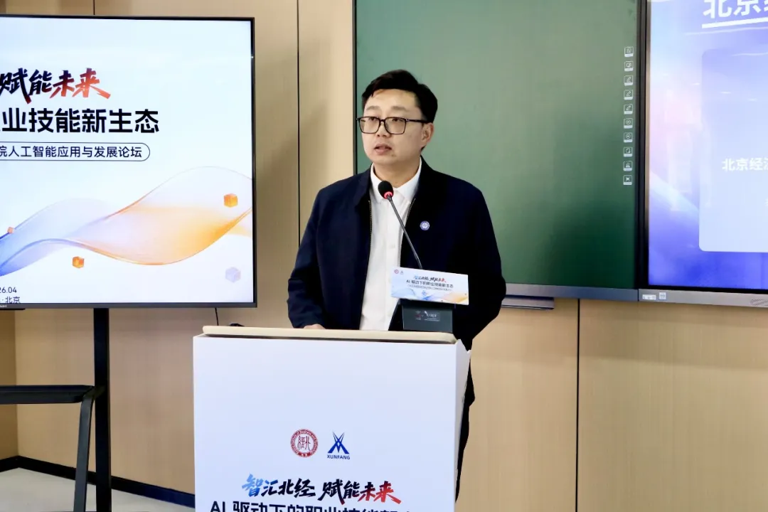 为抢抓人工智能发展战略机遇,深化产教融合、校企合作,培养适应数字经济时代的高素质技术技能人才,4月10日,“智汇北经·赋能未来”2026北京经济技术职业学院人工智能应用与发展论坛在学校华为ICT学院多功能厅圆满举行。本次论坛以“AI驱动下的职业技能新生态”为主题,汇聚华为、讯方、百度智能云、麒麟软件等知名企业高管、行业专家,与校领导、师生代表齐聚一堂,共话AI技术前沿、共商产教协同育人新路径,共绘职业教育数字化发展新蓝图。
